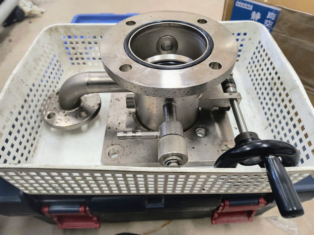 拡散ポンプの試運転はチャンバー部分が取り外されていたため、